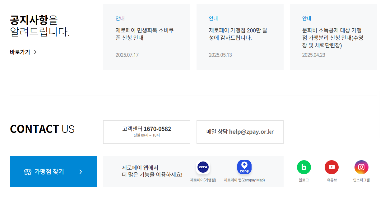 스마트폰 사용이 어렵거나 PC로 미리 찾아보고 싶을 때는 제로페이 공식 웹사이트를 이용하면 됩니다.