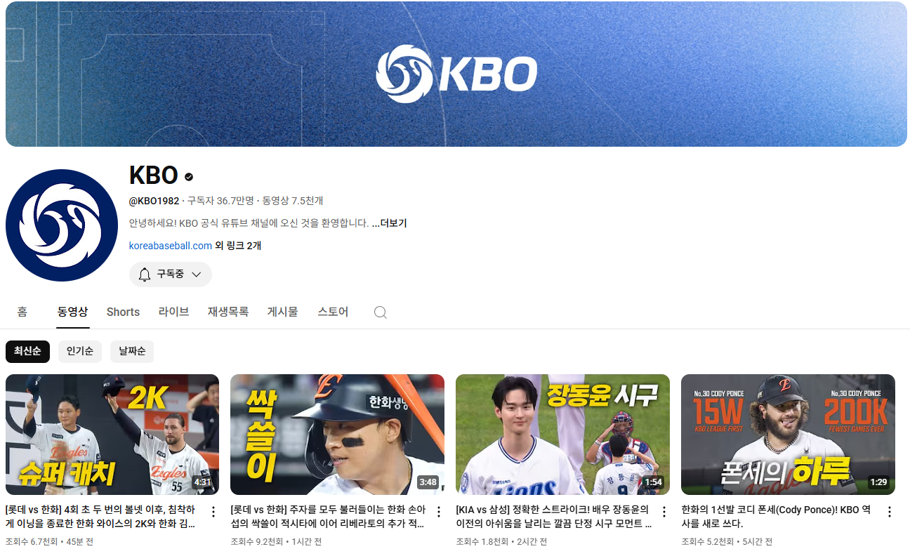 - KBO 공식 유튜브: 'KBO' 채널에서는 매일 모든 경기의 하이라이트와 주요 선수 인터뷰, 명장면 모음 등을 제공합니다.